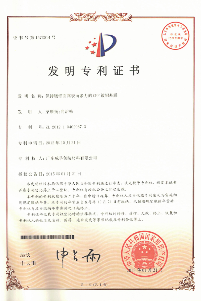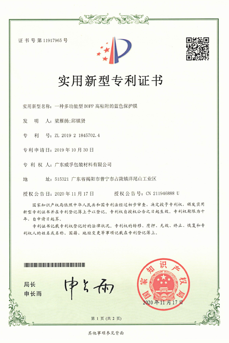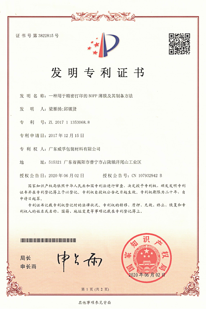 Weifu films cover BOPP, CPP, BOPE, CPE, metallised film, woven sacks, and other series products. Weifu films have been exported to Europe, Germany, Japan, South America, SEA, and other over 20 countries and regions.