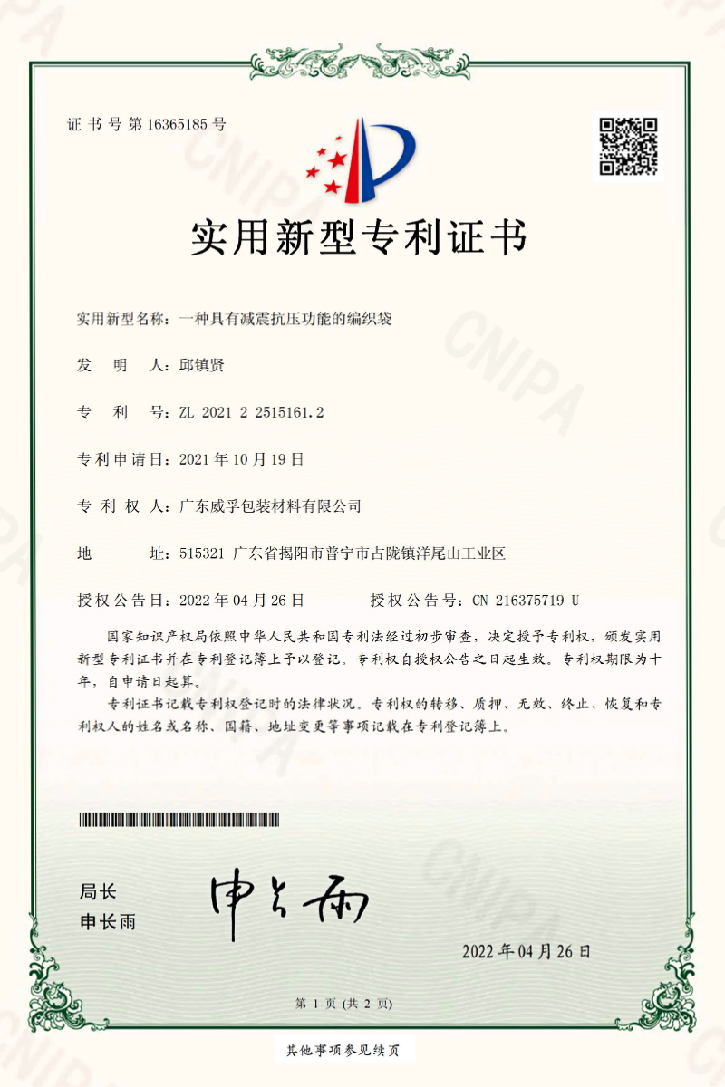 Guangdong Weifu Packaging Material Co., Ltd. was established in 2000, the predecessor can be traced back to the "Zhanlong Yangmeishan Plastic Wire Factory" established in 1981. Guangdong Weifu is located in Yangweishan Industrial Area, Zhanlong Town, Puning City, Guangdong Province, covering an area of about 180K square meters, with a registered capital of 45.2 million US dollars, a total investment of 800 million RMB and an annual sales volume of 650 million RMB.